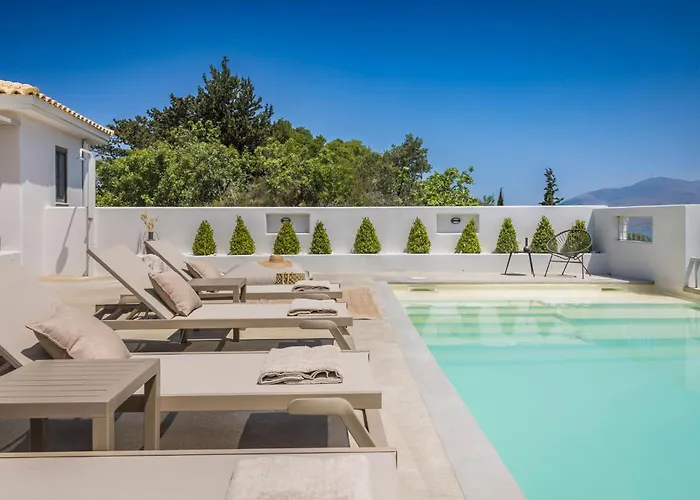 I Villa Mirto - Iris Sunset Villas har matplats, samt vattenkokare, te-/kaffebryggare och köksredskap. Villan med 3 badrum ligger 5 km från Argostoli Kefalonia flygplats.